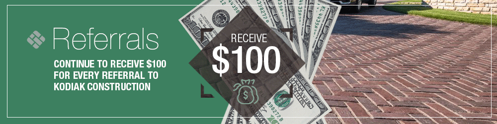 For every person you refer who completes a Kodiak Construction project, we’ll send you $100 check. There is no limit to the amount of $100 referral money you can collect.